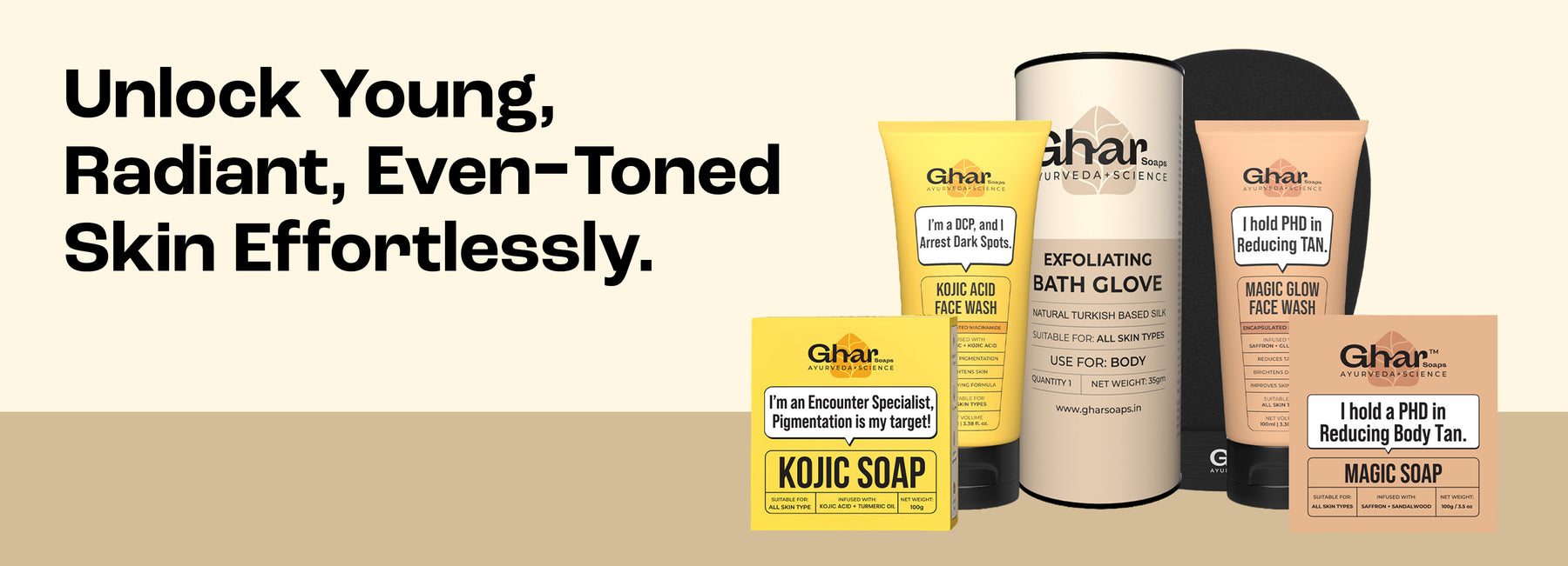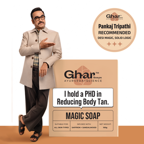 Watch those tan lines vanish with me every day! I'm your De-tan Magician, offering stress-free relief with a delightful fragrance. With saffron, sandalwood, and coconut oil by my side, I'll make your skin radiant, bright, and moisturized.