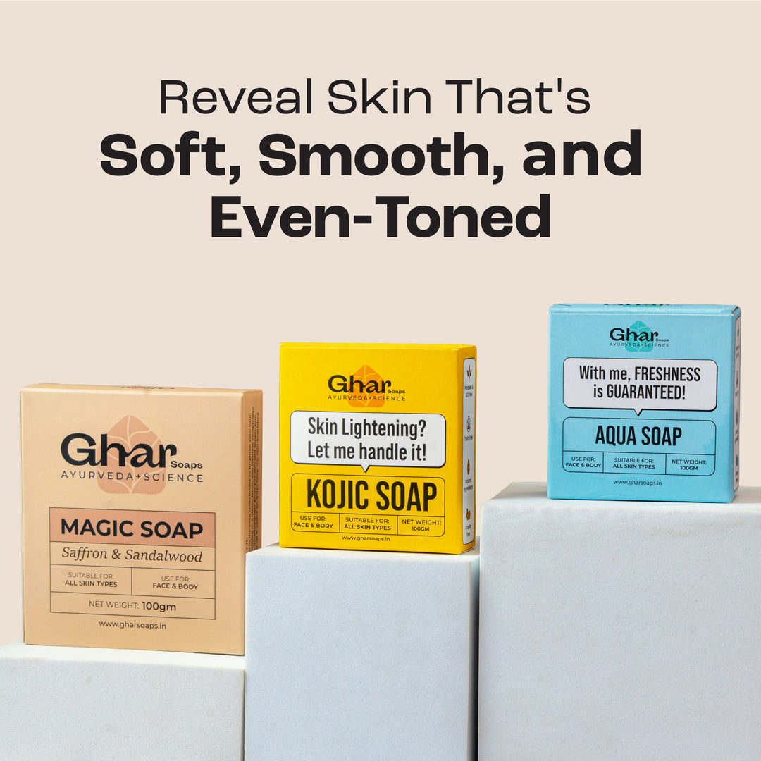 At Ghar Soaps, we don’t cut corners or compromise. We proudly reject harmful chemicals and focus on solving skin problems, not creating them. By upholding integrity over cost-cutting, we leave out synthetic preservatives and harsh additives to ensure your skin stays safe and healthy.