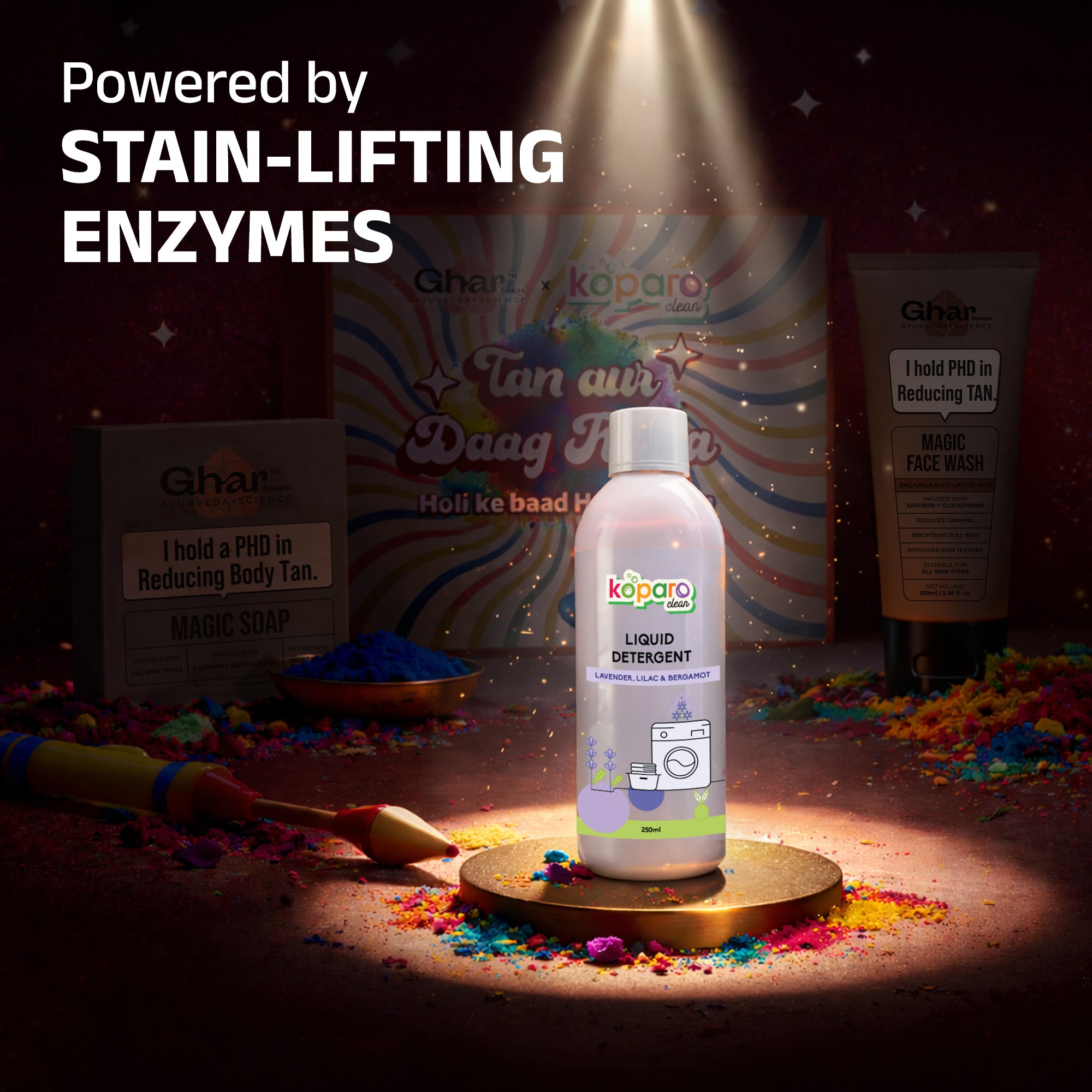 Enzymes remove tough stains in cold water while protecting fabric fibres.